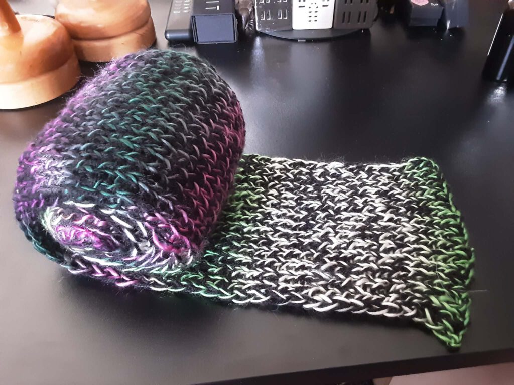Hier zeige ich euch eine Mütze im Doubelface quasi auch doppelt gestrickt. 🙂