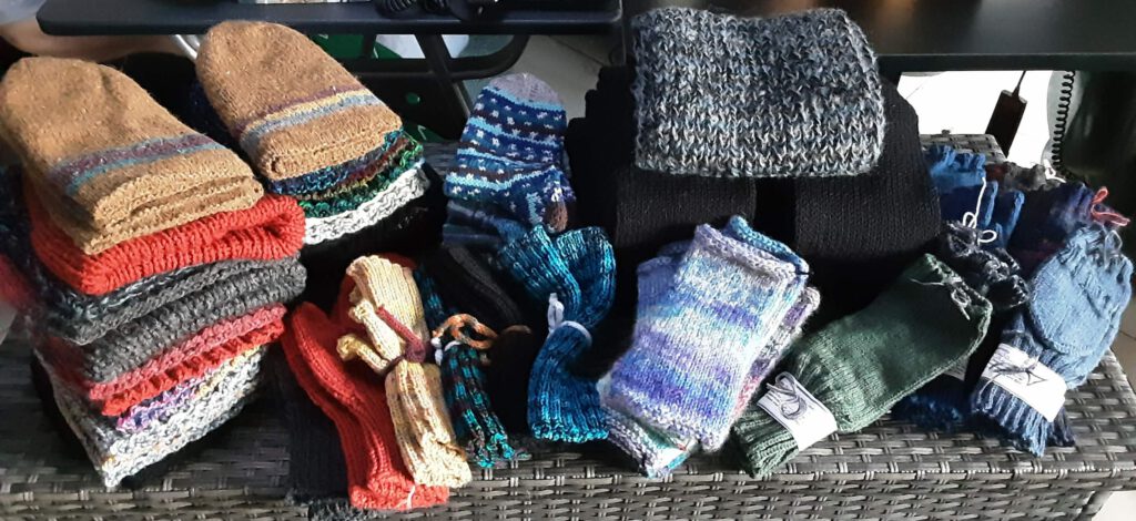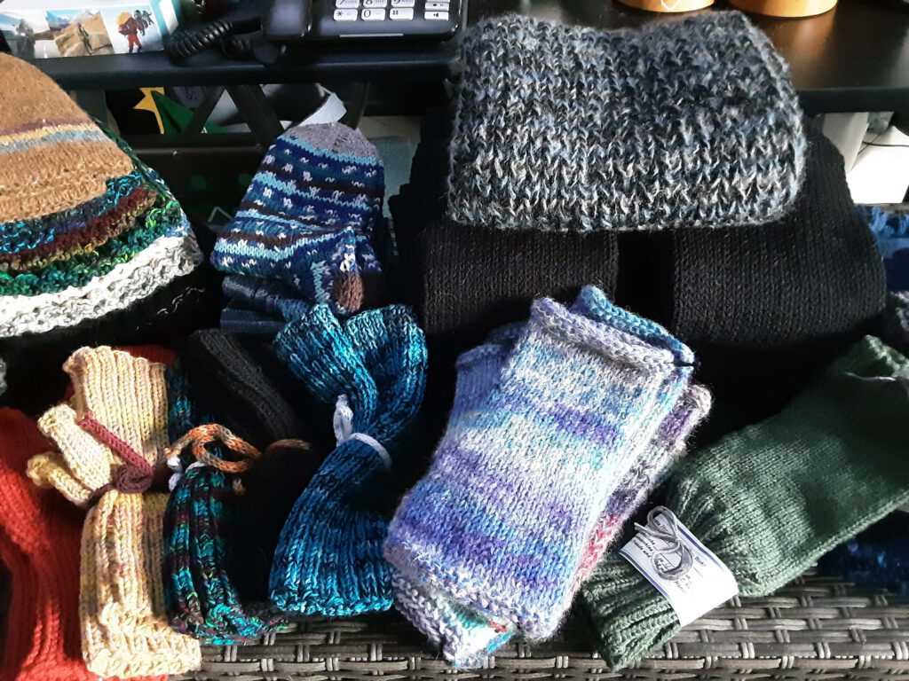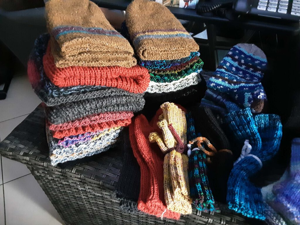 Und hier noch näher dran ? Gestrickt sind die Mützen, Schals und diverse Handschuhe von mir.